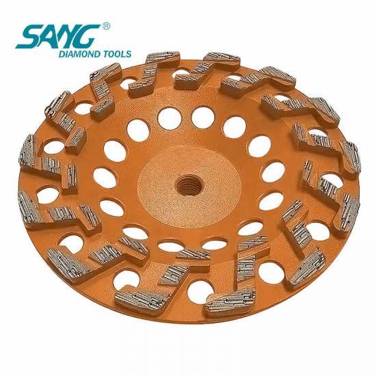 cantou roda de diamante usado para charmfering, biselamento e moagem de bordas de pedra e concreto & amp; superfície. grão: 36 #, 46 #, 60 #, 80 #, 100 #, 120 #, 200 # existe conexão universal de 150mm (22,23 / m14)