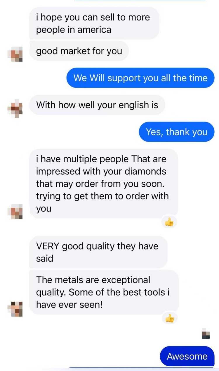 “Tenho várias pessoas impressionadas com seus diamantes e que podem fazer pedidos em breve. Estou tentando fazer com que elas façam pedidos com você.”