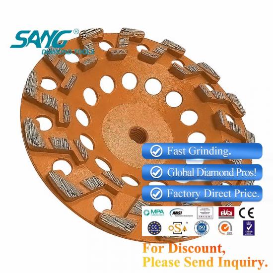 Roda de copo de diamante de segmento S de grau supremo durável de 7 polegadas para rebarbadora de concreto
