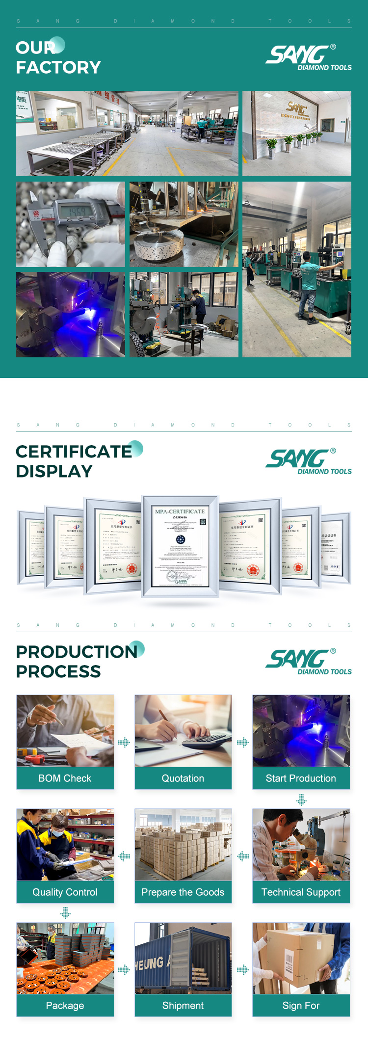 Na SANG Diamond Tools, oferecemos serviços de OEM e ODM personalizados para atender às necessidades de suas máquinas e marca. Entre em contato conosco hoje mesmo para solicitar um orçamento, catálogo ou amostra.