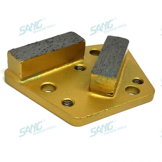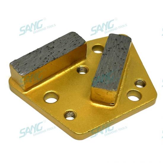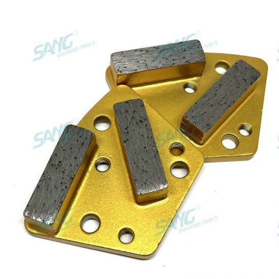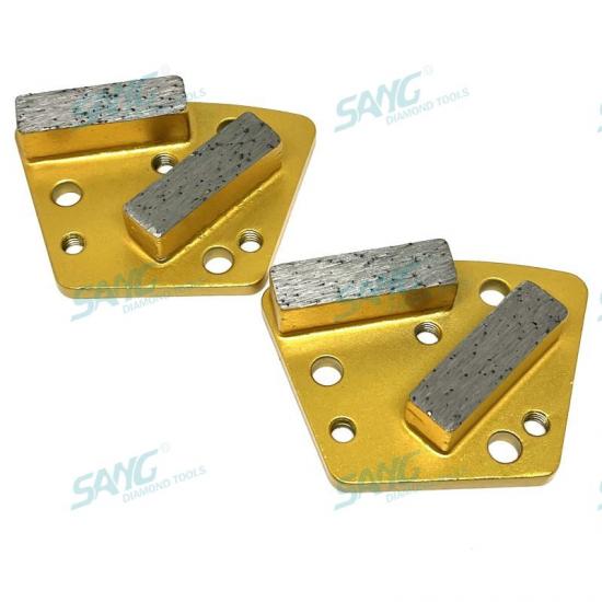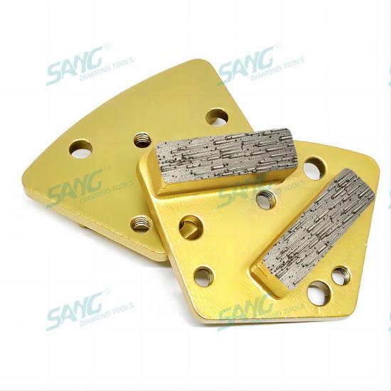 Sapatas de retificação trapezoidais são um tipo de ferramenta diamantada usada em retificadoras de piso de concreto. Eles são chamados de "trapezoidais" devido ao seu formato, que lembra um trapézio. Essas sapatas de esmerilhamento são normalmente fixadas nas placas ou cabeçotes giratórios da retificadora e são responsáveis por remover a camada superior do piso de concreto, nivelar superfícies irregulares e suavizar imperfeições.